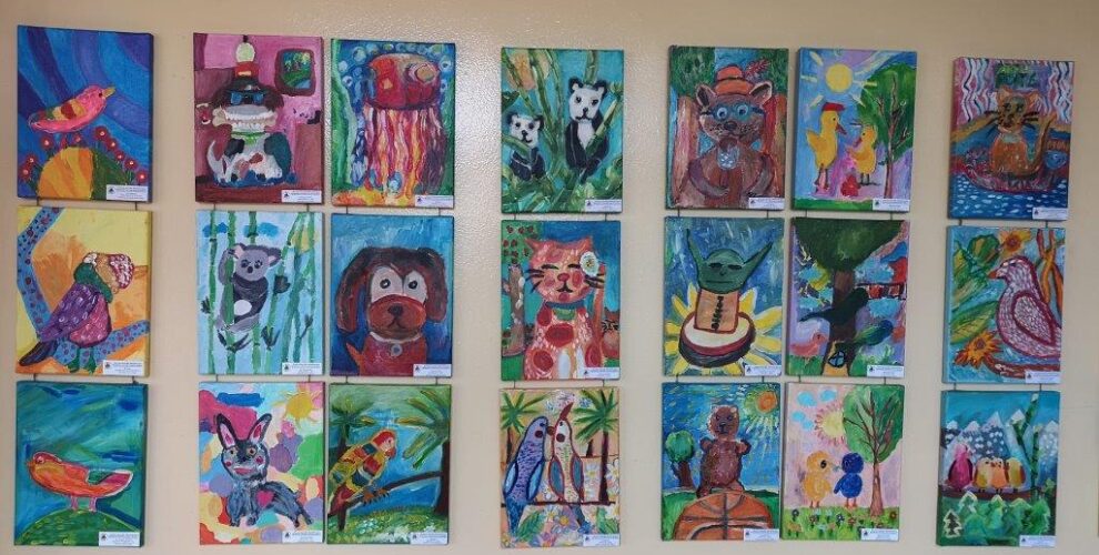 Gegužių progimnazijos Mažojoje galerijoje 2022-06-10 atidaryta 8d kl. mokinės Emos Peleckytės II-oji autorinė paroda „JAUČIU“.