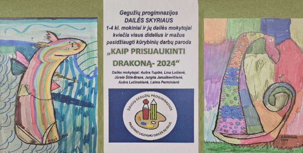 Mokinių piešinių paroda „Drakonas – 2024“ Tarp žemės ir dangaus skrajoja būtybė, kaupianti savyje ugnies