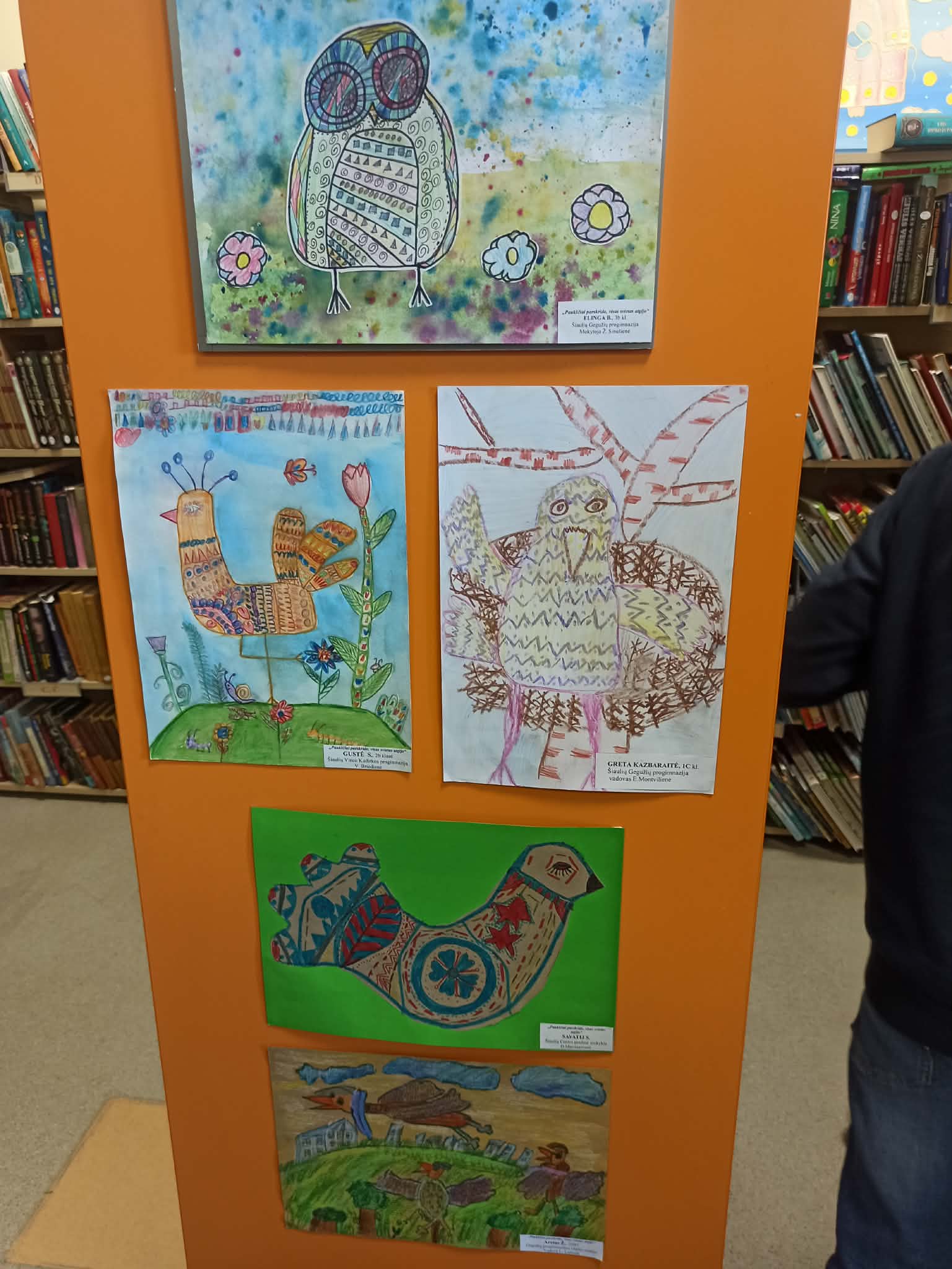 Balandžio 8 dieną Šiaulių Viešosios bibliotekos vaikų literatūros skyriuje (Gvazdikų takas) buvo atidaryta šalies pradinių klasių mokinių ir lopšelių – darželių vaikų piešinių paroda „Paukščiai parskrido, visas svietas atgijo“. Paroda skirta šiuo metu į Lietuvą parskrendantiems paukščiams paminėti, kurie ant savo sparnų į gimtinę parneša šilumą. Vaikai domėjosi Lietuvos paukščiais ir dailės raiškos priemonėmis perteikė paukščių savitumą. Parodoje dalyvauja 159 jaunieji kūrėjai ir 80 jų mokytojų iš Pakruojo, Telšių, Akmenės, Šiaulių rajonų, Joniškio, Plungės, Kėdainių, Kuršėnų, Šiaulių miestų.